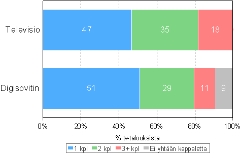 C10 Tv-talouksien jakautuminen television ja digisovittimen lukumäärän mukaan, helmikuu 2008