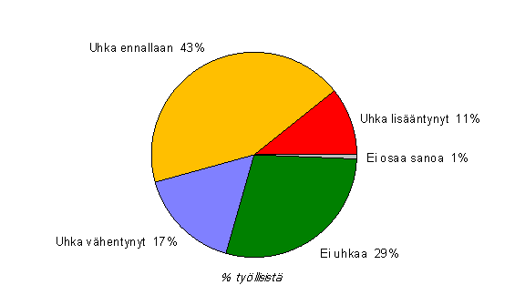 A6 Työllisten arvio työttömyyden uhan muutoksesta omalla kohdallaan viimeisten 12 kuukauden aikana, maaliskuu 2008