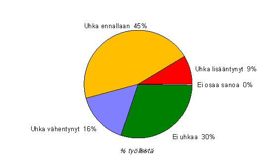 A6 Työllisten arvio työttömyyden uhan muutoksesta omalla kohdallaan viimeisten 12 kuukauden aikana, huhtikuu 2008