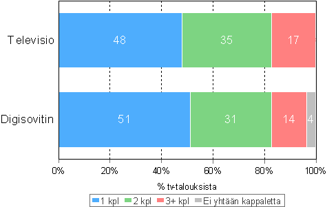 C10 Tv-talouksien jakautuminen television ja digisovittimen lukumäärän mukaan, toukokuu 2008