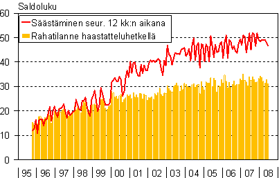 A2 Kuluttajien arviot kotitaloutensa säästämismahdollisuuksista seuraavan 12 kk aikana ja rahatilanteesta haastatteluhetkellä 10/1995 - 6/2008