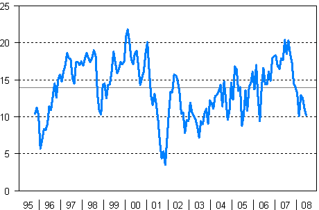 Konsumenternas förtroendeindikator 10/1995-6/2008