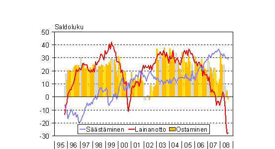 A8 Kuluttajien arviot säästämisen, lainanoton ja kestotavaroiden ostamisen edullisuudesta haastatteluhetkellä 10/1995 - 8/2008