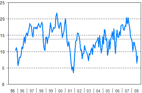 Kuluttajien luottamusindikaattori 10/1995-8/2008