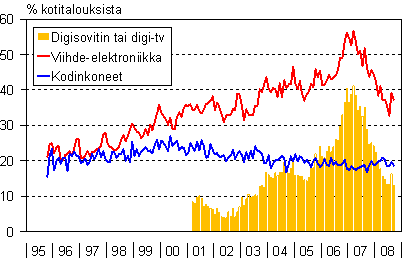 A3 Kotitalouksien aikomukset käyttää rahaa kodintekniikan hankintaan seuraavan puolen vuoden aikana 10/1995 - 9/2008