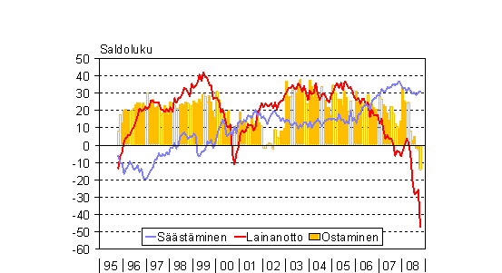 A8 Kuluttajien arviot säästämisen, lainanoton ja kestotavaroiden ostamisen edullisuudesta haastatteluhetkellä 10/1995 - 10/2008