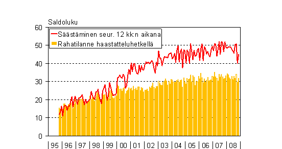 A2 Kuluttajien arviot kotitaloutensa säästämismahdollisuuksista seuraavan 12 kk aikana ja rahatilanteesta haastatteluhetkellä 10/1995 - 11/2008