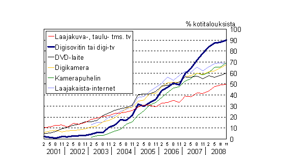C 6 Uuden viihde-elektroniikan yleistyminen kotitalouksissa 2/2001-11/2008