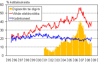 A3 Kotitalouksien aikomukset käyttää rahaa kodintekniikan hankintaan seuraavan puolen vuoden aikana 10/1995 - 12/2008