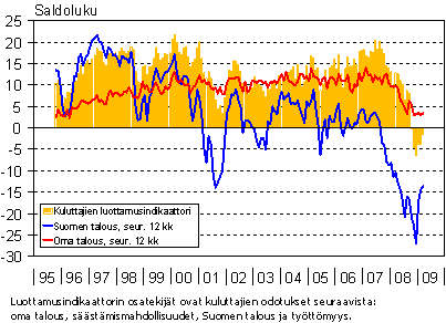 A0 Kuluttajien odotukset taloudesta ja kuluttajien luottamusindikaattori 10/1995 - 3/2009