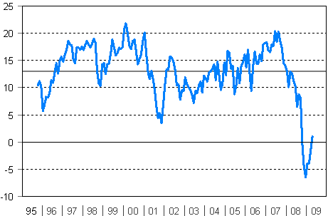 Kuluttajien luottamusindikaattori 10/1995-4/2009
