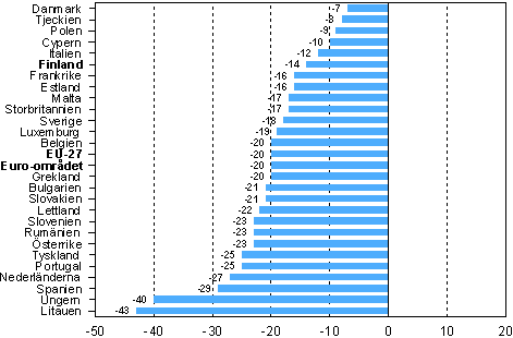 Konsumenternas förtroendeindikators avvikelse från landets medeltal i EU-länderna, april 2009*