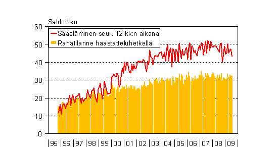 A2 Kuluttajien arviot kotitaloutensa säästämismahdollisuuksista seuraavan 12 kk aikana ja rahatilanteesta haastatteluhetkellä 10/1995 - 7/2009