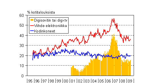 A3 Kotitalouksien aikomukset käyttää rahaa kodintekniikan hankintaan seuraavan puolen vuoden aikana 10/1995 - 7/2009
