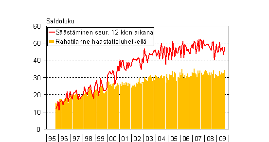 A2 Kuluttajien arviot kotitaloutensa säästämismahdollisuuksista seuraavan 12 kk aikana ja rahatilanteesta haastatteluhetkellä 10/1995 - 8/2009