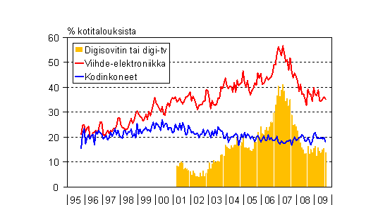 A3 Kotitalouksien aikomukset käyttää rahaa kodintekniikan hankintaan seuraavan puolen vuoden aikana 10/1995 - 8/2009