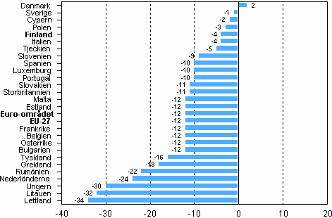 Konsumenternas förtroendeindikators avvikelse från landets medeltal i EU-länderna, juli 2009*
