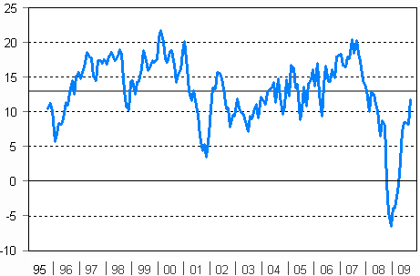 Kuluttajien luottamusindikaattori 10/1995-9/2009