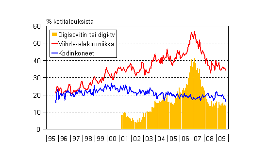 A3 Kotitalouksien aikomukset käyttää rahaa kodintekniikan hankintaan seuraavan puolen vuoden aikana 10/1995-10/2009