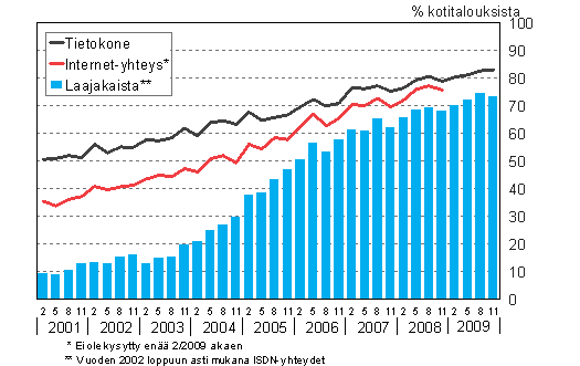 C 2 Tietokoneiden ja internet-yhteyksien yleisyys kotitalouksissa 2/2001-11/2009