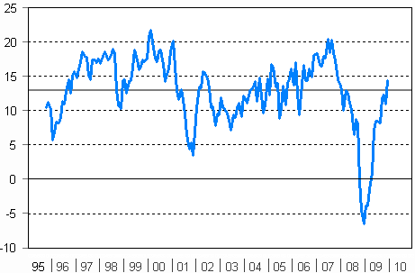 * Laskettu kausitasoitetuista sarjoista. Keskiarvo: 10/1995-.