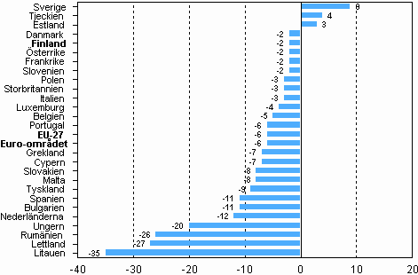 Konsumenternas förtroendeindikators avvikelse från landets medeltal i EU-länderna, november 2009*