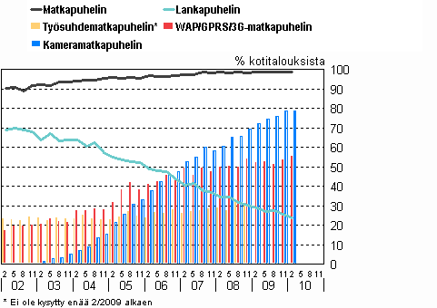 C 3 Telelaitteet: puhelimien yleisyys kotitalouksissa 2/2002-2/2010