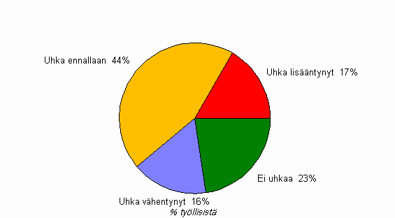 A6 Työllisten arvio työttömyyden uhan muutoksesta omalla kohdallaan viimeisten 12 kuukauden aikana, huhtikuu 2010