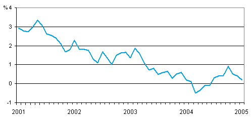 Kuluttajahintojen vuosimuutos 1/2001 - 1/2005