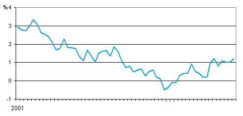 Förändringen av konsumentpriserna på årsnivå 1/2001-9/2005
