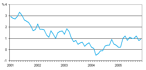 Förändringen av konsumentpriserna på årsnivå 1/2001-11/2005