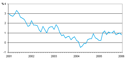 Kuluttajahintojen vuosimuutos 1/2001 - 1/2006