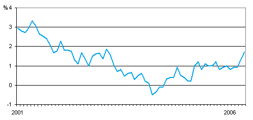 Förändringen av konsumentpriserna på årsnivå 1/2001-5/2006