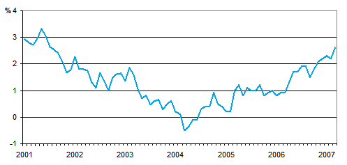 Kuluttajahintojen vuosimuutos 1/2001 - 3/2007