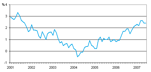 Year-on-year change in consumer prices 1/2001 - 6/2007