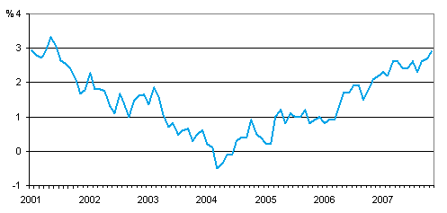 Kuluttajahintojen vuosimuutos 1/2001 - 11/2007