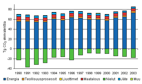 Lähde: Greenhouse gas emissions in Finland 1990-2003, National Inventory Report to the UNFCCC, 15th April 2005. Tilastokeskus