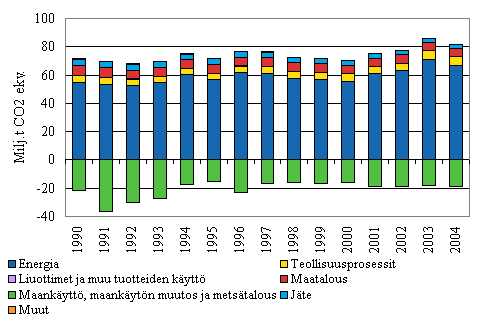 Lähde: Greenhouse gas emissions in Finland 1990-2004, National Inventory Report to the European Union, 15th January 2006. Tilastokeskus