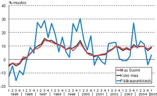 Omakotitalojen nimellishintaindeksin vuosimuutos 1995/1-2005/1