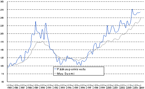 - Omakotitalojen hintakehitys 1985/1 - 2005/1, indeksi 1985=100 (17.6.2005)