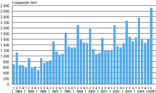 Omakotitalotonttien kauppojen lukumäärät 1994/1-2005/2