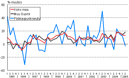 Omakotitalotonttien nimellishintaindeksin vuosimuutos 1995/1-2005/2