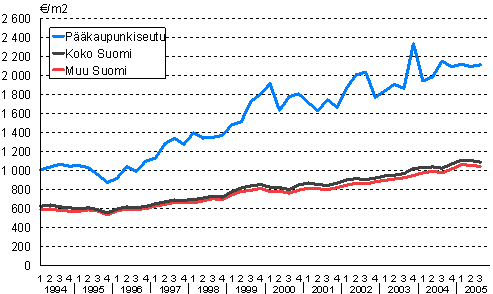 Omakotitalojen keskimääräiset neliöhinnat 1994/1-2005/3