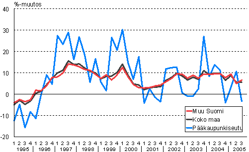 Omakotitalojen nimellishintaindeksin vuosimuutos 1995/1-2005/3