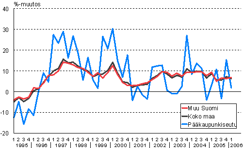 Omakotitalojen nimellishintaindeksin vuosimuutos 1995/1-2006/1