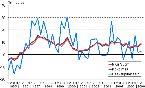 Omakotitalojen nimellishintaindeksin vuosimuutos 1995/1-2006/2