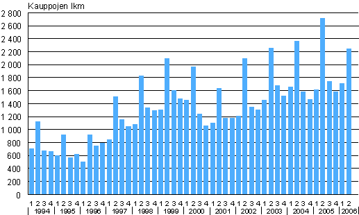 Omakotitalotonttien kauppojen lukumäärät 1994/1-2006/2