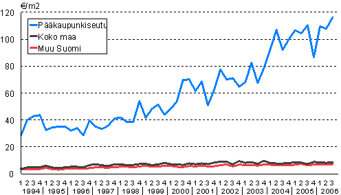 Omakotitalotonttien keskineliöhinnat 1. neljännes 1994 - 3. neljännes 2006