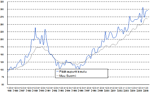 - Omakotitalojen hintakehitys 1. neljännes 1985 - 3. neljännes 2006, indeksi 1985=100 (15.12.2006)