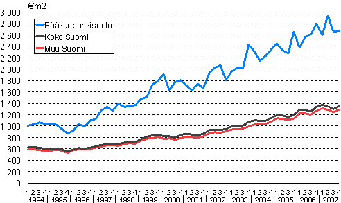 Omakotitalojen keskimääräiset neliöhinnat 1. neljännes 1994 - 4. neljännes 2007
